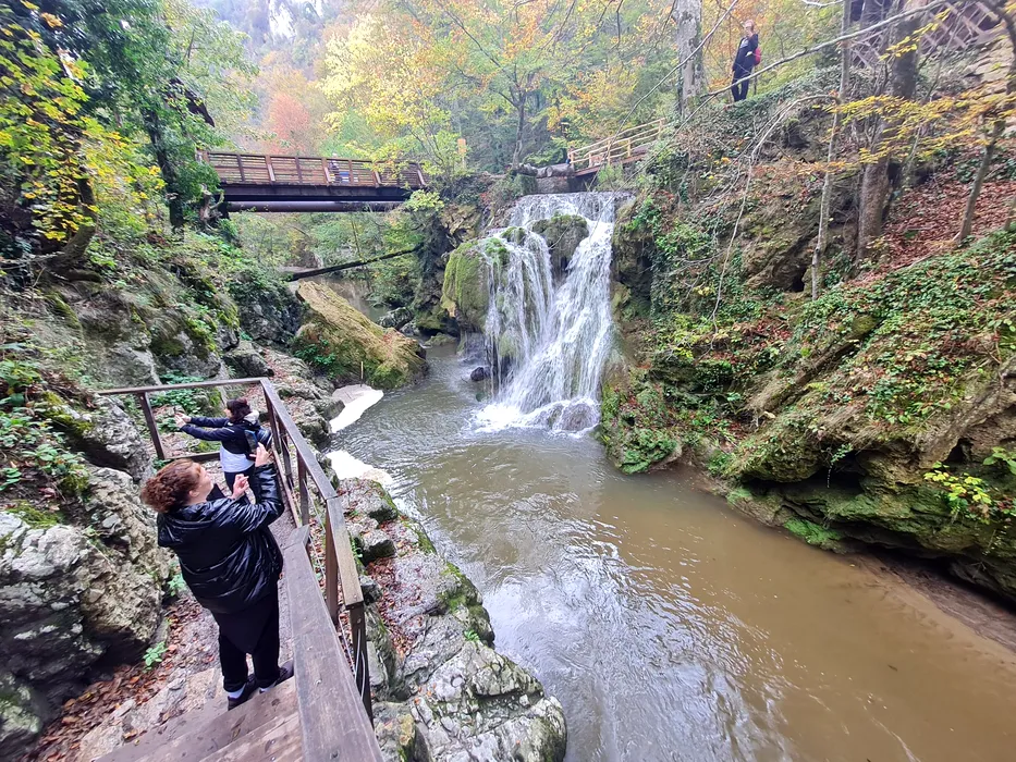 VIDEO | Cum arată acum celebra cascadă Bigăr, la mai bine de un an după ce s-a distrus. Turiștii continuă să o viziteze
