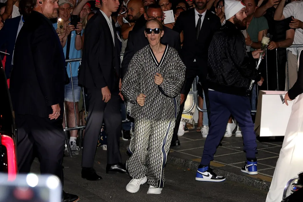 Celine Dion in full Dior is seen leaving her hotel in Paris.