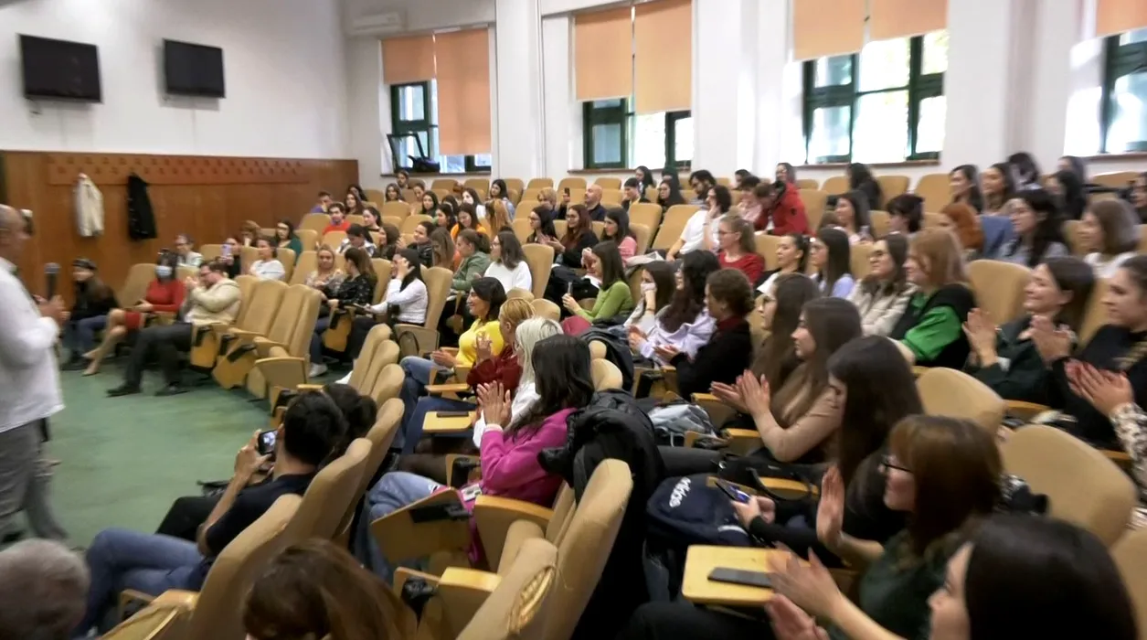 studenții prezenți la cursul despre istoria romilor și influența muzicii lăutărești în folclorul românesc