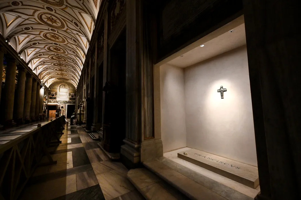 The tomb of late Pope Francis in the basilica of Santa Maria Maggiore in Rome, Italy on April 27, 2025. Pope Francis (1936-2025) wrote in his testament that he wanted to be buried in the left nave of the basilica Santa Maria Maggiore (St Mary Major). 'I ask that my tomb be prepared in the burial niche in the side aisle between the Pauline Chapel and the Sforza Chapel of the Basilica. The tomb should be in the ground; simple, without particular ornamentation, bearing only the inscription: Franciscus'. Unlike the majority of popes who have been interred beneath St Peter's Basilica, Pope Francis has reportedly made arrangements to be buried at Santa Maria Maggiore in Rome's Esquilino district. The basilica, one of the four major papal basilicas, has historically been the resting place of seven pope. Photo: (EV) Vatican Media/ABACAPRESS.COM
