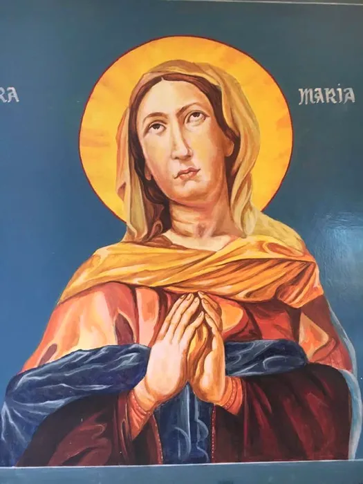 Icoană realizată de artist în memoria bunicii sale, Maria, și donată Parohiei Gubandru, din Olt (foto: arhivă personală)