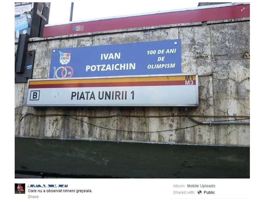Cum îl cheamă de fapt pe marele campion Ivan Patzaichin. ”Gafa” apărută la metroul din Piața Unirii