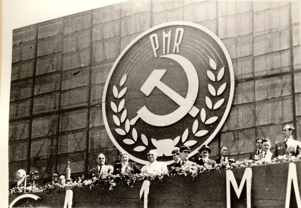 Aspect de la tribuna oficială cu prilejul sărbătoririi Zilei Internaţionale a Oamenilor Muncii, Bucureşti – Piaţa Victoriei, 1 mai 1949 / Fototeca online a comunismului românesc, Cota: 1/1949