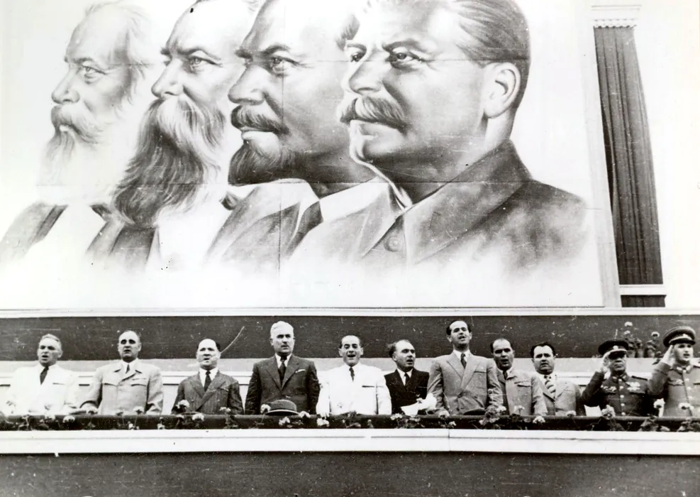 Aspecte de la tribuna oficială cu prilejul sărbătoririi Zilei Internaţionale a Oamenilor Muncii, Bucureşti, 1 mai 1952 1952 / Fototeca online a comunismului românesc, Cota: 1/1952