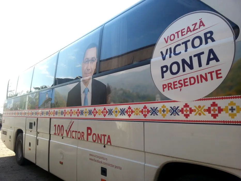 Cum te plimbi cu „Votează Victor Ponta Președinte” în cursele din Teleorman. Cât e biletul