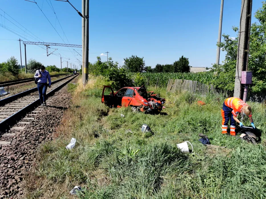 CUMPLIT. Doi morţi şi doi răniţi, după ce maşina în care se aflau a fost lovită de tren – FOTO