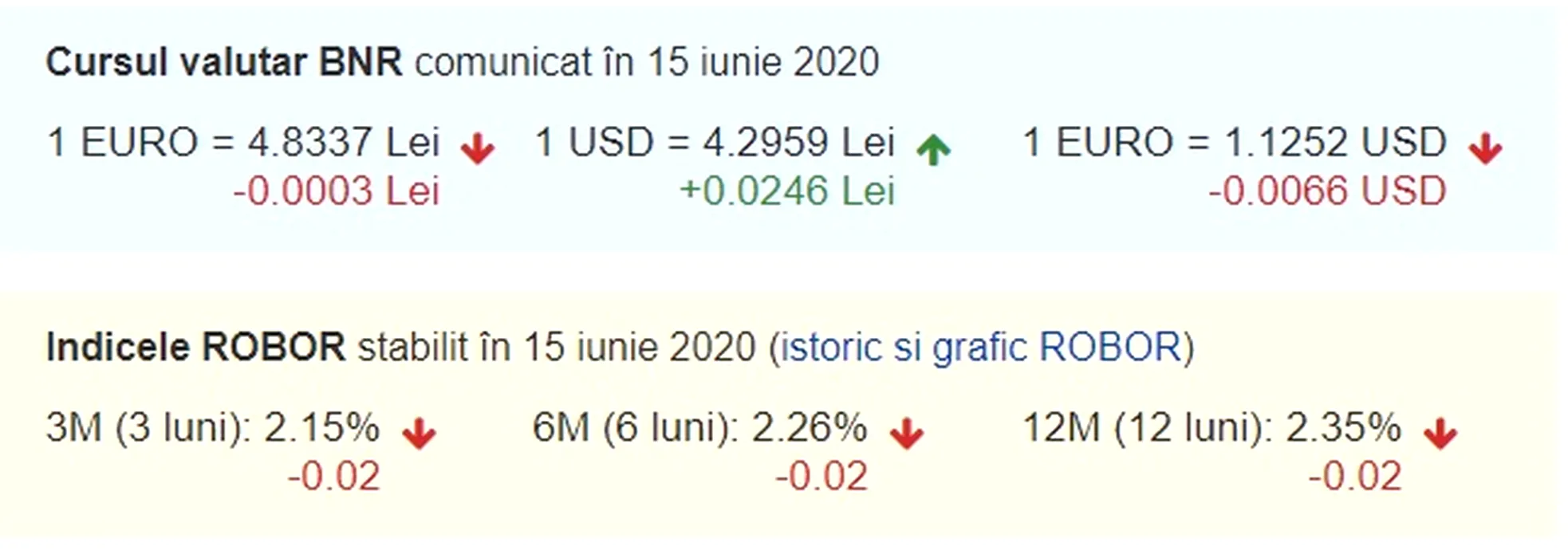 Curs valutar BNR 15 iunie 2020