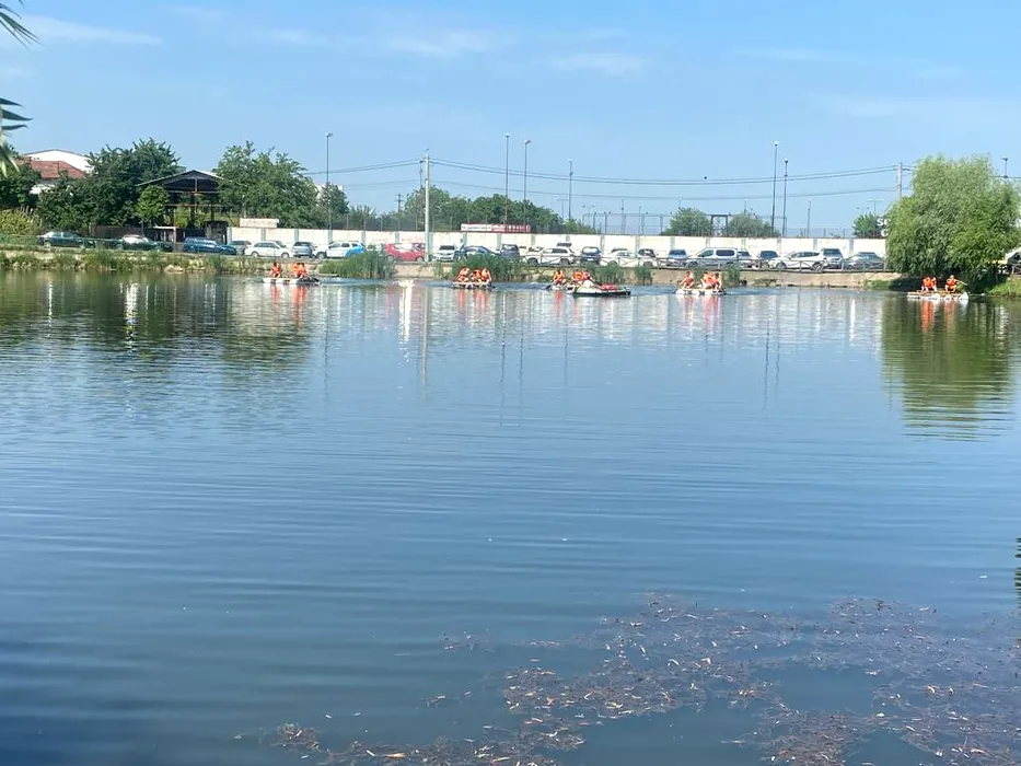 Cursă cu plute din PET-uri, organizată de liceeni din Craiova pe lacul de la Hanul Doctorului