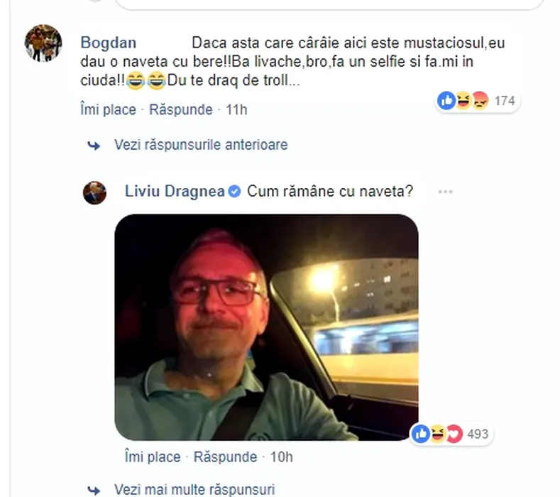 „Dacă ăsta care cârâie aici este mustăciosul, eu dau o navetă cu bere! Livache, bro, fă un selfie!” Reacția lui Dragnea după ce a primit acest mesaj pe Facebook