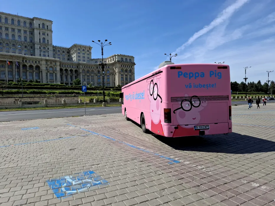 Dacă ești bucureștean, afli că „Peppa Pig te iubește!” de pe un autocar roz care circulă pe străzile Capitalei. Legătura cu Cristian Popescu Piedone