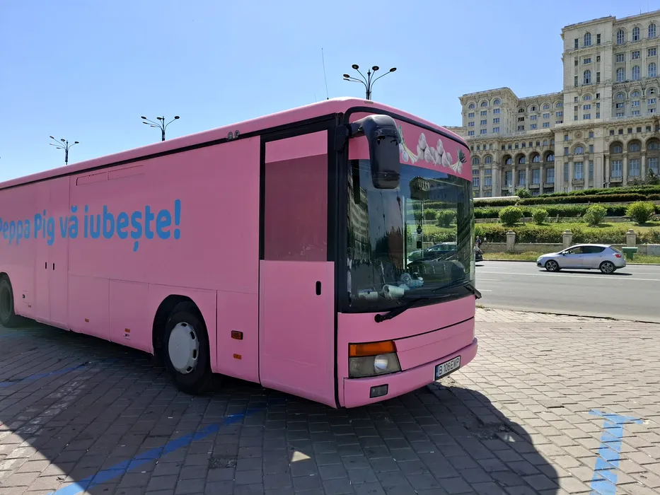 Dacă ești bucureștean, afli că „Peppa Pig te iubește!” de pe un autocar roz care circulă pe străzile Capitalei. Legătura cu Cristian Popescu Piedone