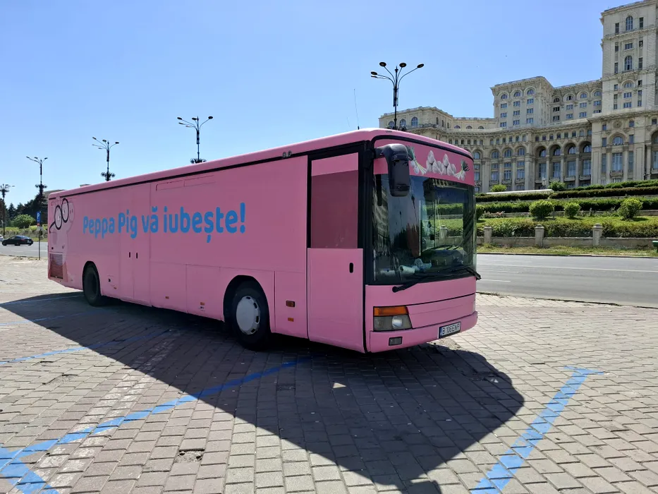 Dacă ești bucureștean, afli că „Peppa Pig te iubește!” de pe un autocar roz care circulă pe străzile Capitalei. Legătura cu Cristian Popescu Piedone
