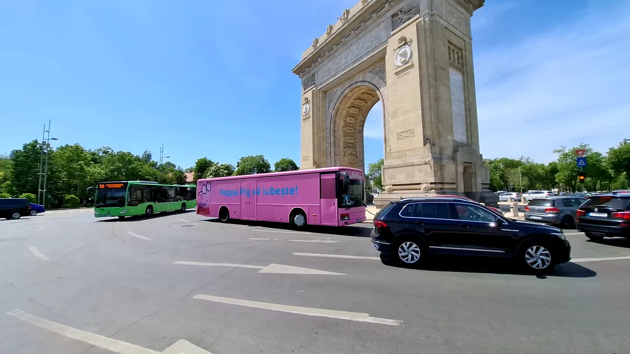 Dacă ești bucureștean, afli că „Peppa Pig te iubește!” de pe un autocar roz care circulă pe străzile Capitalei. Legătura cu Cristian Popescu Piedone