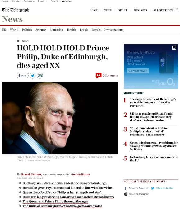 Daily Telegraph l-a „omorât” pe Prințul Philip. Gafă uriașă a britanicilor