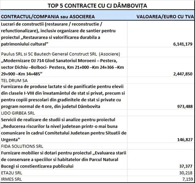 DÂMBOVIȚA Unde au mers banii publici în 2014. Topul firmelor care au contracte locale cu statul