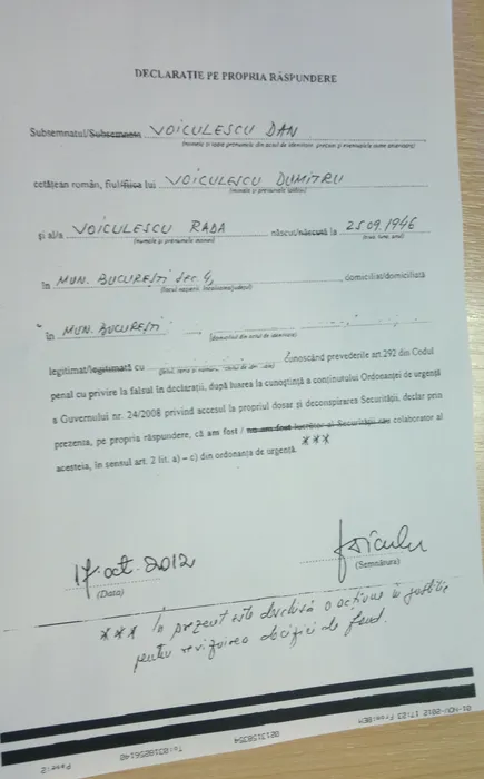 Dan Voiculescu spune în declarația de candidatură că a colaborat cu Securitatea. Precizările cu asterisc ale fondatorului PC