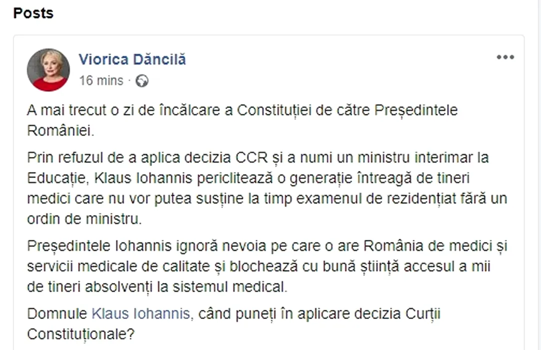 Dăncilă face acuzații: Iohannis blochează cu bună știință accesul a mii de tineri absolvenți la sistemul medical / PSD susține că 8.000 de absolvenți nu pot da la timp examenul de rezidențiat din președintelui – FOTO