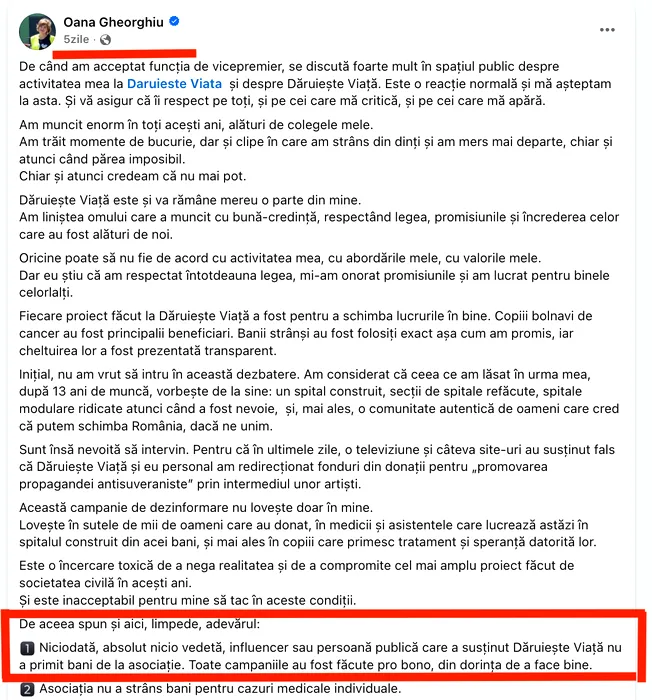 “Dăruiește viață” și… adevăr. Vicepremierul lui Bolojan, Oana Gheorghiu susține că NICIODATĂ n-a plătit vreo vedetă pentru a-i face imagine. Gândul publică asocierea în firme cu vedete ProTV care au promovat-o intens, ani la rândul