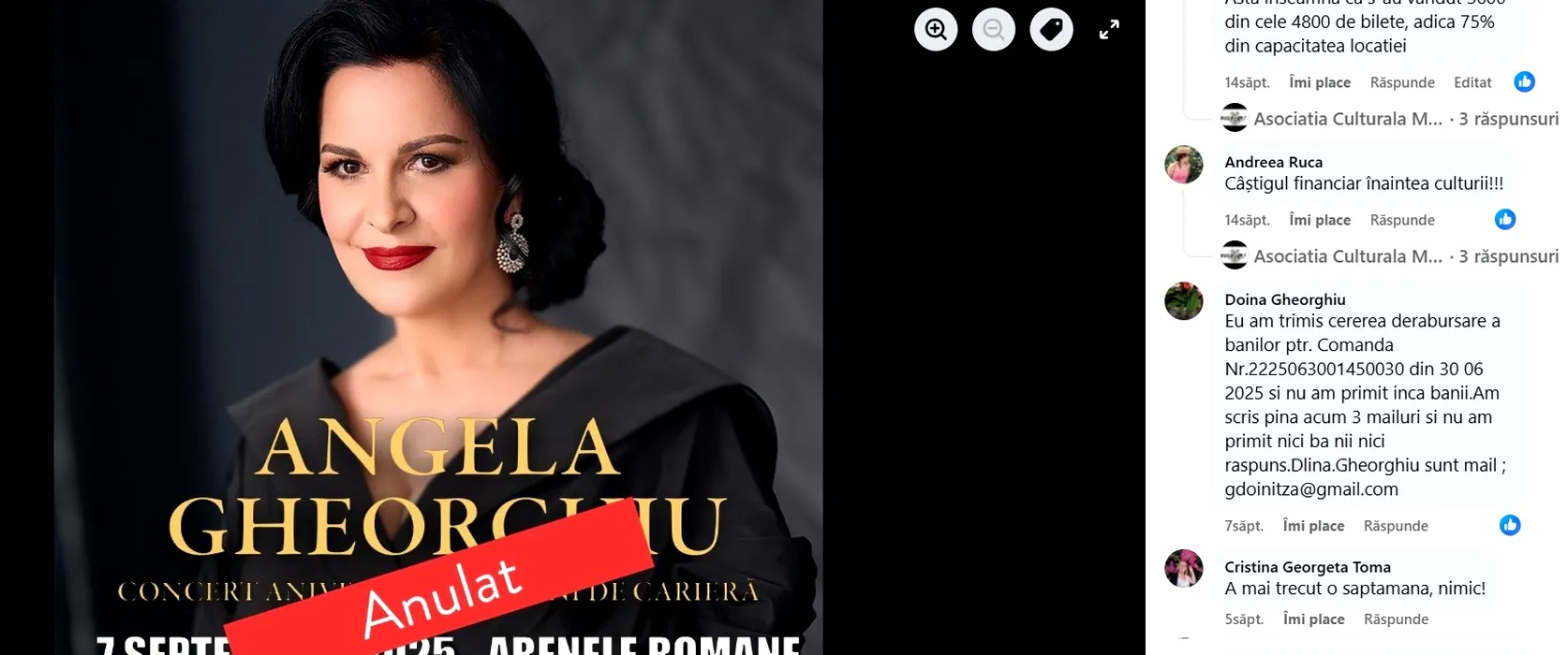 De 4 luni se chinuie să-şi recapete banii. 1.300 de melomani şi-au luat ţeapă cu biletele la concertul aniversar al sopranei Angela Gheorghiu