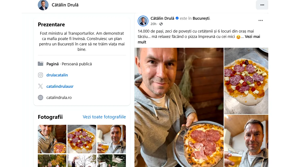 GALERIE FOTO: De acest Halloween, Cătălin Drulă s-a deghizat în Nicuşor Dan. Vorbește la fel, se comportă la fel, acționează la fel, îl invocă la tot pasul. Ba chiar îi copiază și campania electorală. S-a pozat și el cu pizza „câștigătoare”. Urmează clipul de la salonul de tuns?