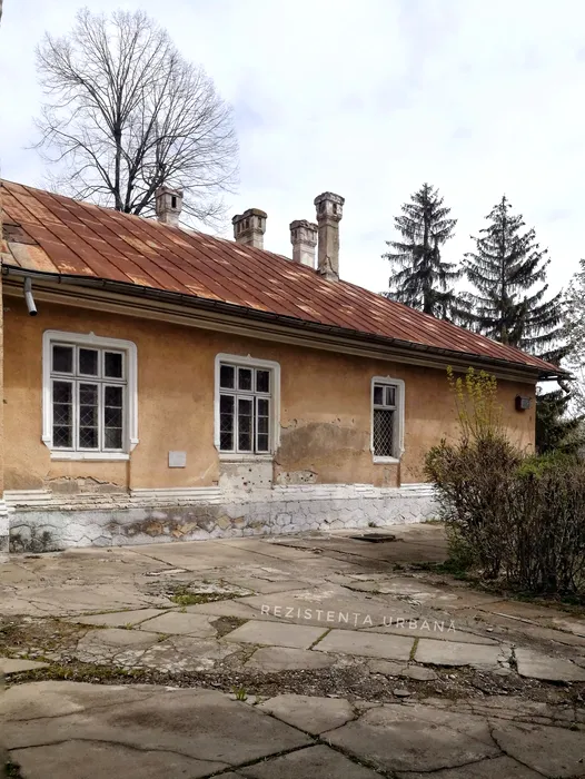 Curtea din spate. Locul execuției, zidul unui corp de gardă, extensie a clădirii principale. Cadrul este luat aproximativ de unde a stat plutonul de execuție. Sursa foto și descrieri: Rezistența urbană