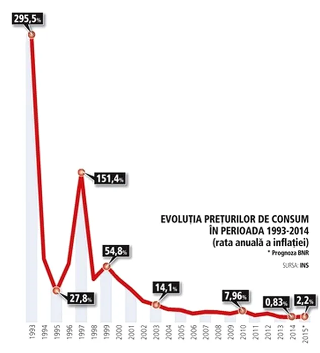De la inflație de aproape 300% pe an, la mai puțin de 1% în 22 de ani. Cum a ajuns România să aibă într-un an inflația dintr-o singură zi din 1993
