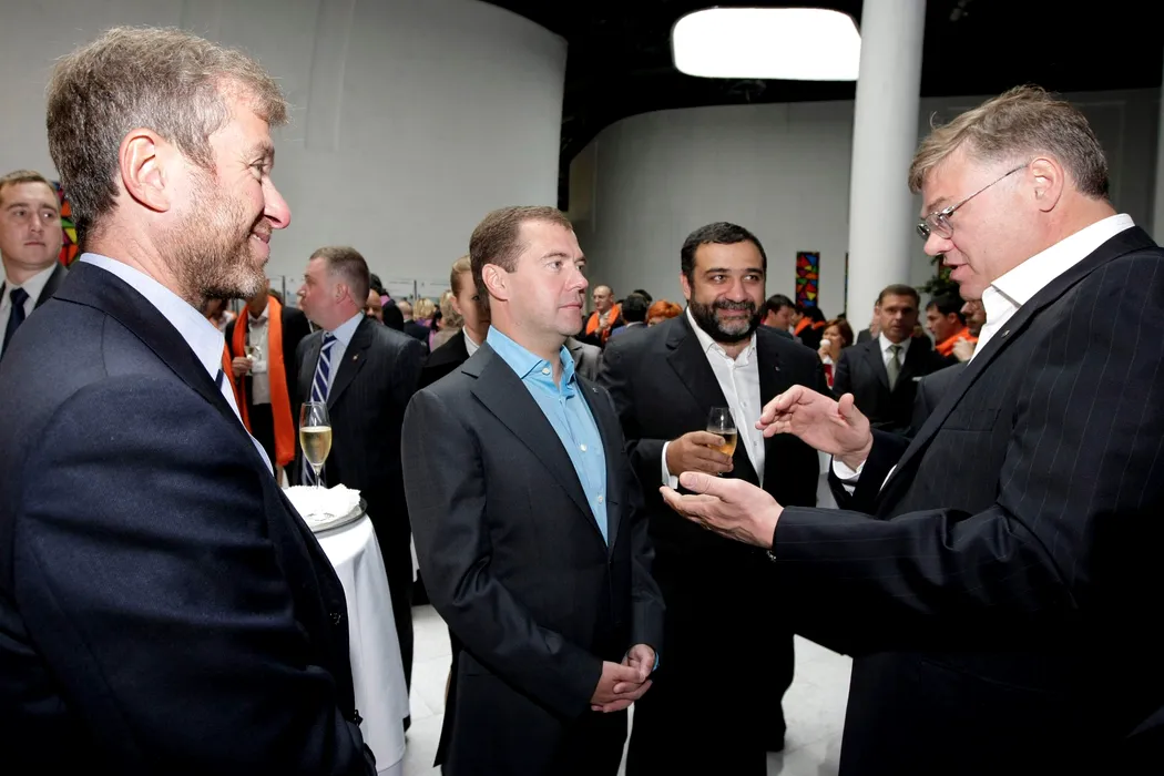 285: MOSCOW, RUSSIA. SEPTEMBER 20, 2009. Businessman Roman Abramovich, President of Russia Dmitry Medvedev, President of the Skolkovo Moscow School of Management, Troika Dialog Group's Board Chairman and CEO Ruben Vardanian and Chairman of the Board of Directors of Evraz Group, Alexander Abramov ( L-R) appear at a meeting with the partners-founders and members of the international board of trustees of the Moscow School of Management 'Skolkovo'.,Image: 38632698, License: Rights-managed, Restrictions: , Model Release: no, Credit line: Profimedia