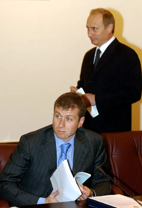 Russian President Vladimir Putin (back) stands next to Roman Abramovich, Governor of Chukotka and owner of the English football club Chelsea listens during a meeting with local officials in the northern Russian town of Salekhard, some 2 500 km from Moscow.,Image: 20459398, License: Rights-managed, Restrictions: RUSSIA OUT, Model Release: no, Credit line: Profimedia