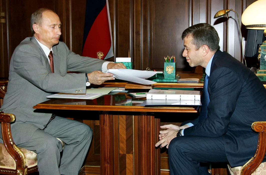 Russian President Vladimir Putin (L) speaks with the Governor of Chukotka region, billinonaire and owner of the Chelsea Football Club Roman Abramovich during their meeting in Moscow, 27 May 2005.,Image: 16779236, License: Rights-managed, Restrictions: , Model Release: no, Credit line: Profimedia