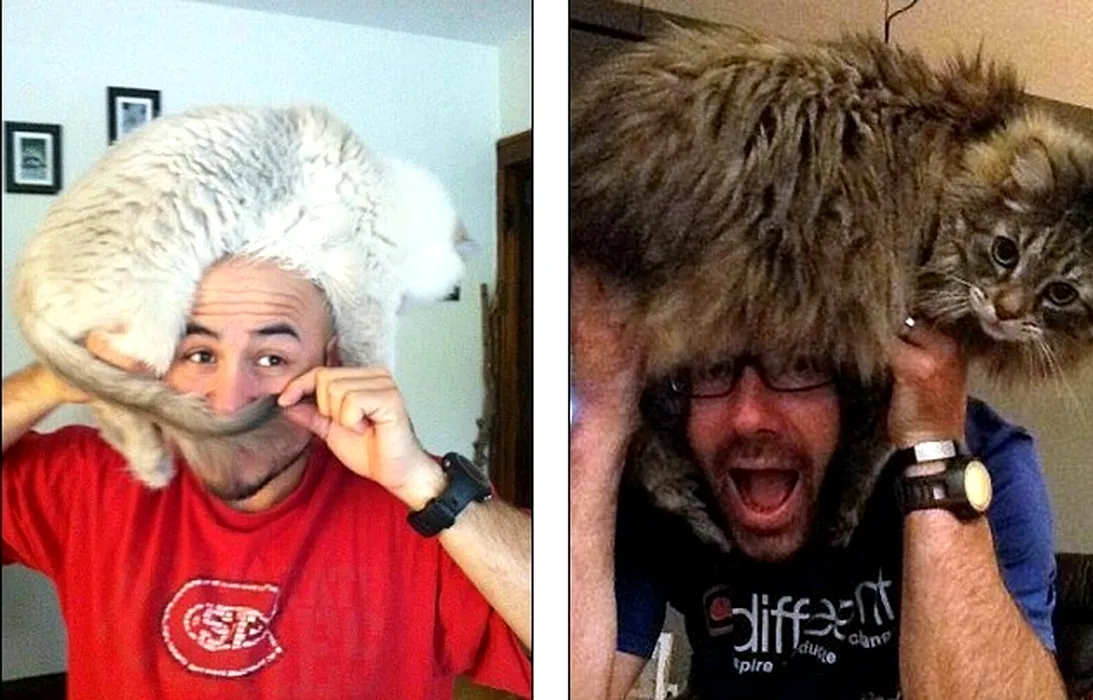 De pe Internet adunate. Pisica, pe post de căciulă. GALERIE FOTO