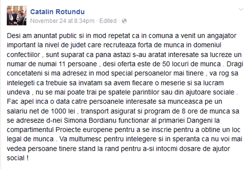 Decât salariu de 1000 de lei pe lună, preferă ajutoarele sociale. Disperat, primarul lansează un apel pe Facebook