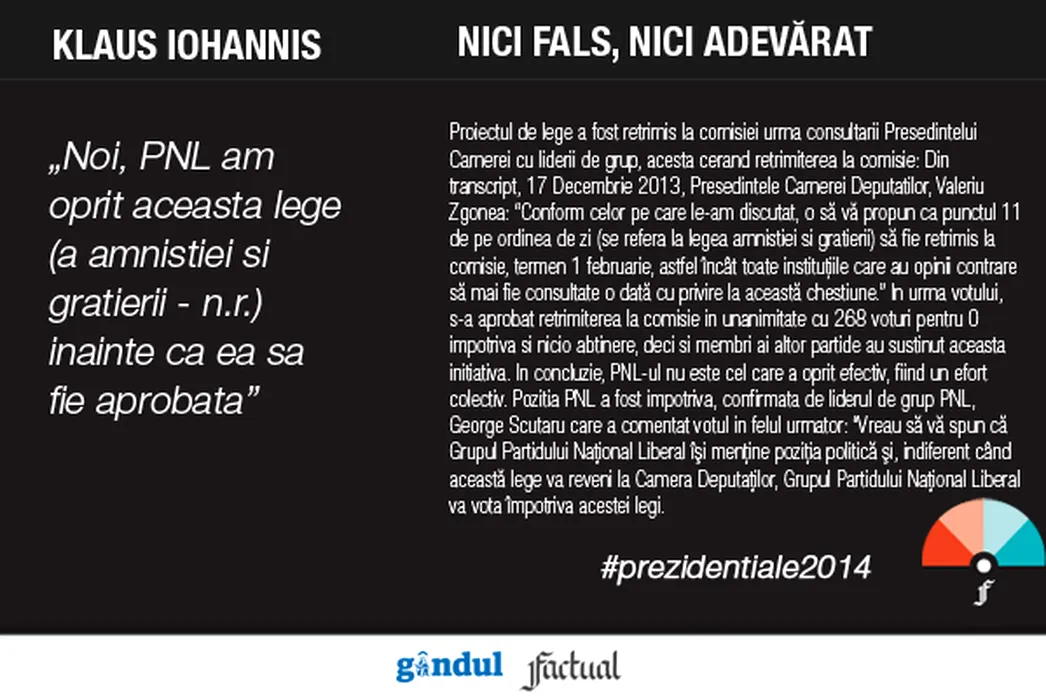 Declarație Klaus Iohannis: ”Noi, PNL, am oprit această legea amnistiei și grațierii înainte să fie aprobată”. Adevărat sau fals?