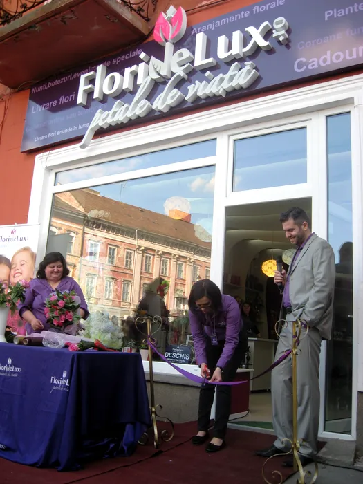 Demonstrație publică de aranjamente florale, la inaugurarea celei mai noi florării din Arad