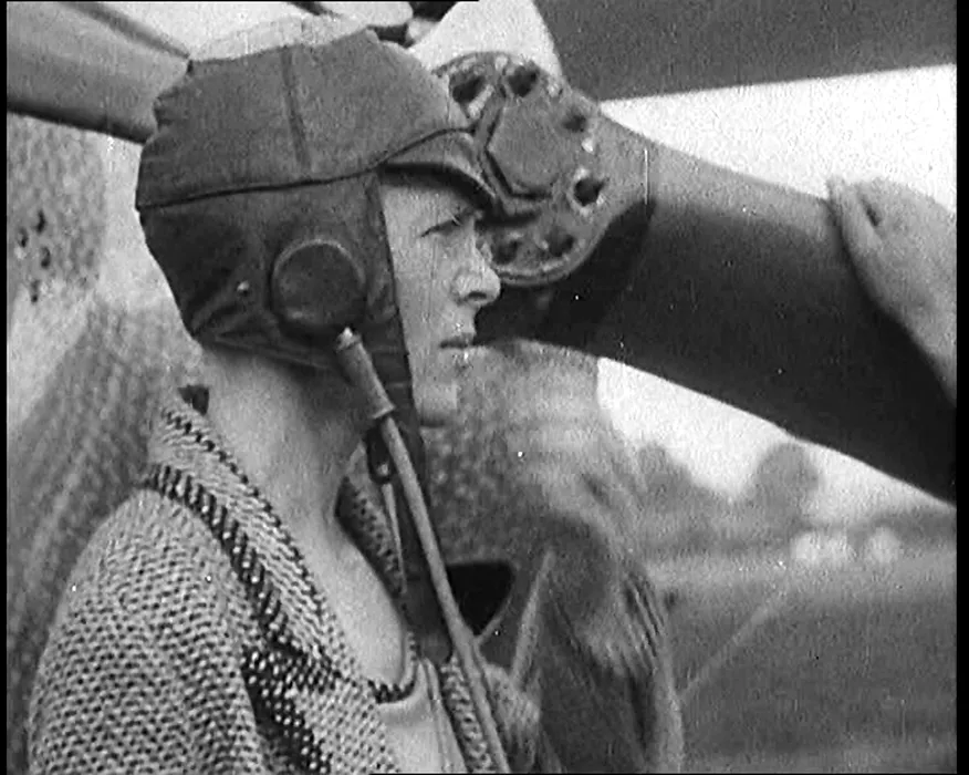 American Aviator Amelia Mary Earhart Wearing A Helmet In Front Of An Airplane. Date: 1920,Image: 796704324, License: Rights-managed, Restrictions: , Model Release: no