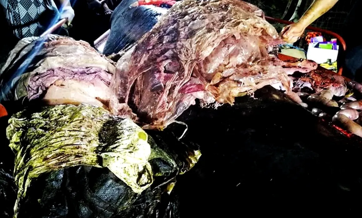 Descoperire șocantă făcută în stomacul unui pui de balenă care „vomita sânge”