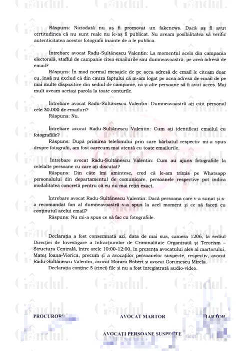 GALERIE FOTO: Ce declarații a dat Elena Lasconi la DIICOT în scandalul pozelor trucate cu Nicușor Dan, Coldea și Ponta. A primit pozele de la „un fan”. Moșteanu și Seidler spuneau „la partid” că Nicușor Dan este „omul lui Coldea”. Lasconi avea aceeași parolă la toate conturile. Gândul publică documentul