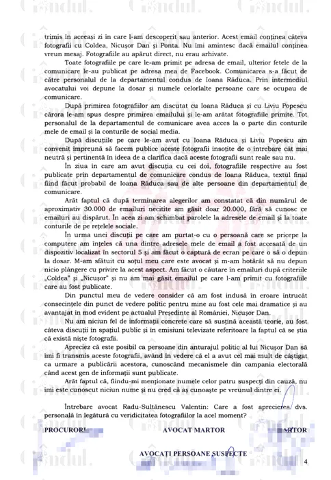 GALERIE FOTO: Ce declarații a dat Elena Lasconi la DIICOT în scandalul pozelor trucate cu Nicușor Dan, Coldea și Ponta. A primit pozele de la „un fan”. Moșteanu și Seidler spuneau „la partid” că Nicușor Dan este „omul lui Coldea”. Lasconi avea aceeași parolă la toate conturile. Gândul publică documentul