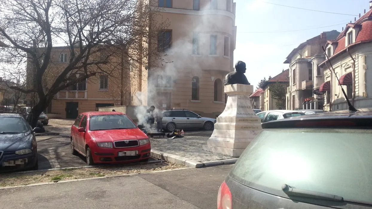 Detaliul din stânga jos din FOTOGRAFIE face de râs întreaga ROMÂNIE! În centrul BUCUREȘTIULUI, lângă statuia lui Papa Ioan Paul al II-lea!