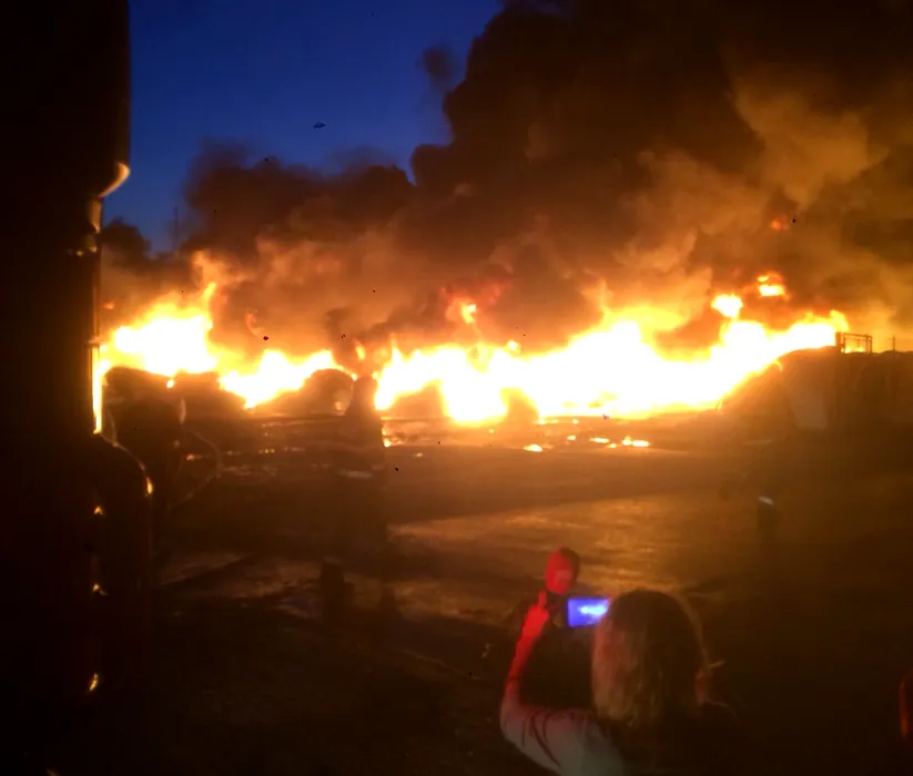Dezastru ecologic după incendiul din Hunedoara, unde arde o fabrică de mase plastice: fumul gros, vizibil de la 10 kilometri. GALERIE FOTO