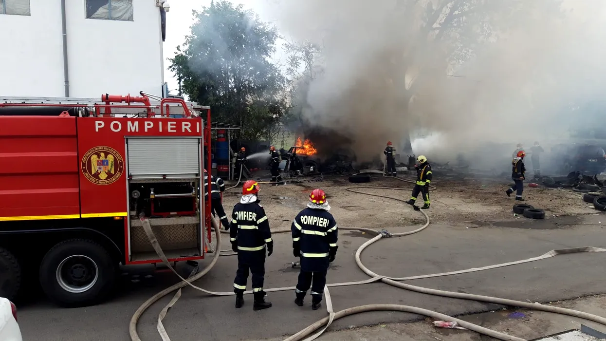 DEZASTRU. Incendiu violent la un depozit de anvelope din București. Ard sute de metri pătrați!