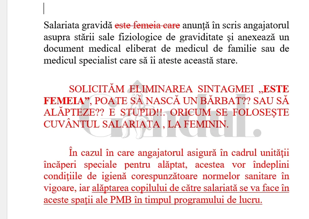 Dezbateri haioase la PMB: „Scoateți sintagma salariata gravidă «este femeia». Poate să nască un bărbat? Sau să alăpteze? E stupid. Suntem obligați să aerisim, dar sunt birouri care nu au geamuri” | DOCUMENT EXCLUSIV
