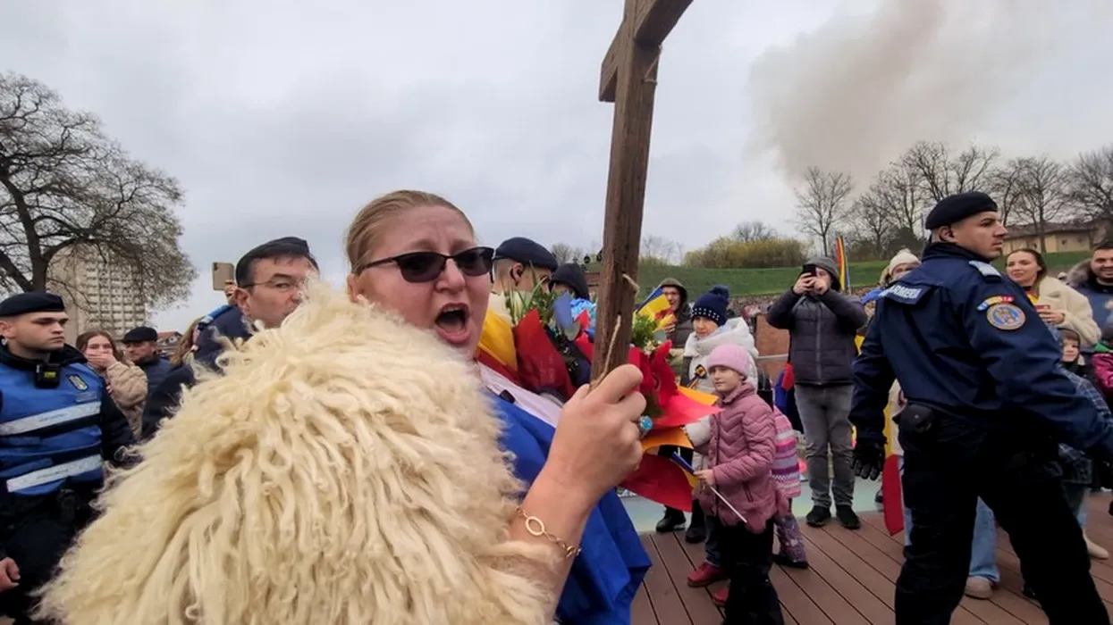 Diana Șoșoacă a venit la Alba Iulia într-o șubă ciobănească. Fanii i-au strigat numele și au fluturat drapele cu chipul ei și al lui Călin Georgescu