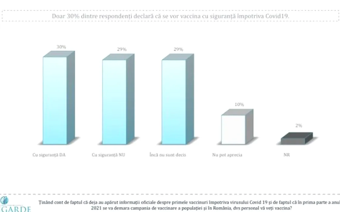 Doar 30% dintre români spun că se vor vaccina împotriva COVID-19 (SONDAJ)