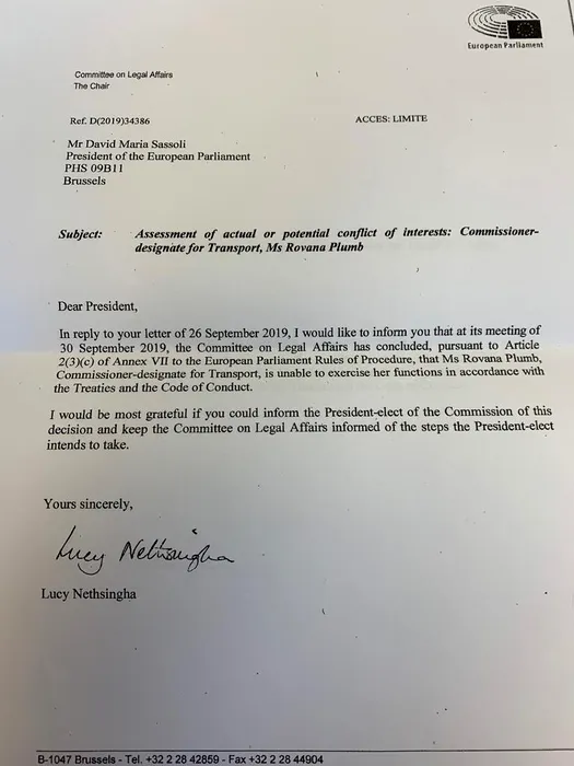 DOCUMENT Ce i-a transmis Comisia JURI președintelui Parlamentului European cu privire la Rovana Plumb