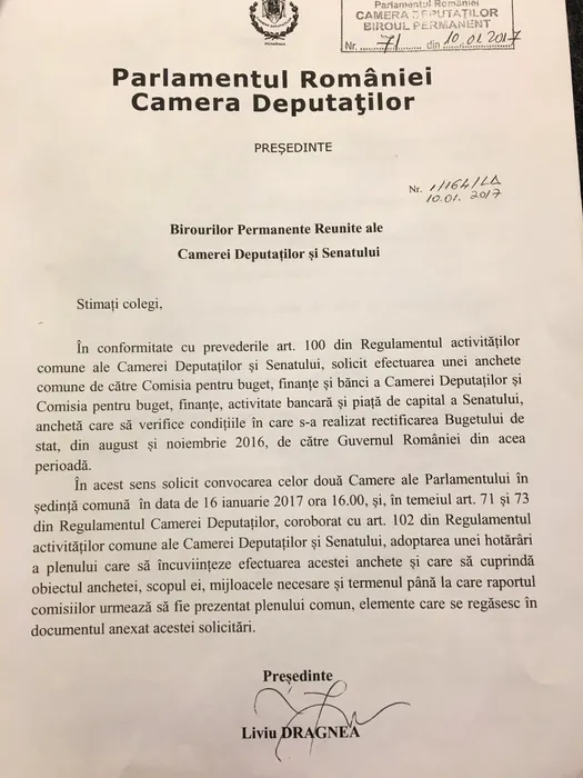 GALERIE FOTO: DOCUMENT. Dragnea convoacă Parlamentul pentru a face comisia de anchetă asupra bugetului lui Cioloș