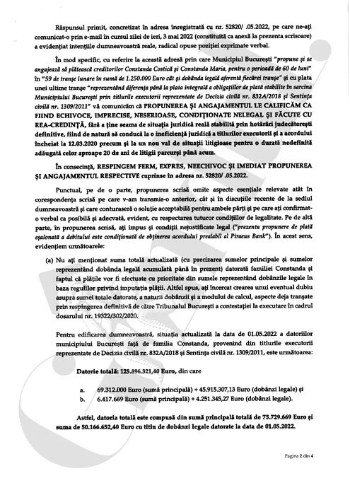 DOCUMENT | Nicușor Dan i-a propus lui Costică Constanda tranșe lunare de 1,2 milioane de euro pentru datoria uriașă. Omul de afaceri a refuzat: „Nu putem aștepta încă cinci ani”
