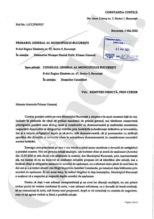 DOCUMENT | Nicușor Dan i-a propus lui Costică Constanda tranșe lunare de 1,2 milioane de euro pentru datoria uriașă. Omul de afaceri a refuzat: „Nu putem aștepta încă cinci ani”
