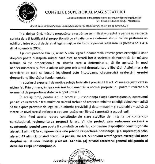 Document. CSM desființează proiectul cu care se laudă Pîslaru de eliminare a cumulului pensiei cu salariul. „Sunt două drepturi fundamentale care nu pot fi îngrădite”