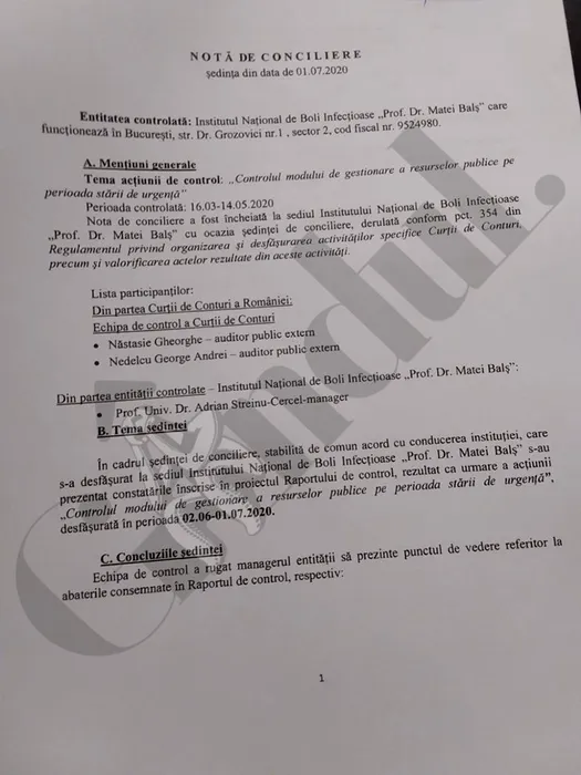 DOCUMENTE EXCLUSIVE. Publicăm ÎN PREMIERĂ raportul Curții de Conturi după controlul de la Institutul ”Matei Balș”! Cum s-au cheltuit banii pe perioada stării de urgență?!