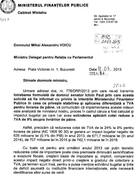Documentul oficial în care Ministerul Finanțelor recunoaște că nu poate compensa pierderea din cauza reducerii TVA